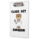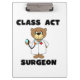 A cute doctor design clipboard any surgeon is sure to love, features a teddy bear doctor with lab coat and stethoscope and black text that reads Class Act Surgeon on a white background.