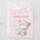 Teddy Bear Cute w Balloons Floral Baby Girl Shower Invitation