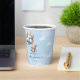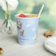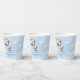 Unforgettable design for paper cups for Boy Baby Shower party features cute Watercolor brown teddy bear with hot air balloon. Modern Hand drawing lettering.