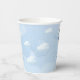Teddy bear descending from the blue sky balloons paper cups