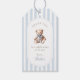 Grandmillennial Teddy Bear Favour Tags, featuring classic blue watercolor stripes and a vintage teddy bear
