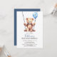 Celebrate your child's first birthday with these cute teddy bear party invitations! The design features an adorable watercolor teddy bear gently swaying on a wooden swing, while holding a balloon with the number one written on it. Use the design tools to customise the text and the fonts. Also available as digital download for invite.