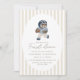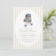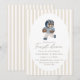 Celebrate your little boy’s first down with this watercolor football birthday invitation featuring an adorable teddy bear in a navy helmet. The soft beige striped background and modern script make it perfect for a baby boy’s first birthday or sports-themed party.