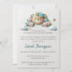 This adorable brown bear with flowers, stars and clouds makes for a sweet design in pale blue, blush pink and gold.
