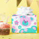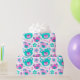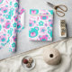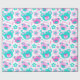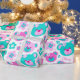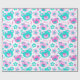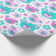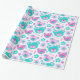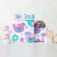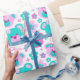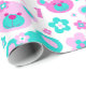 Fun pastel shades pink and aqua teal blue green teddy bear faces and graphic flowers repeat pattern birthday wrapping paper, perfect for a girls 1st Birthday. Personalise with your own birthday girls name and single digit age, currently reads Olivia 1. Graphic uniquely designed by Sarah Trett.