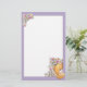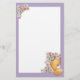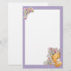 Cute stationery with teddy bear and flowers with purple frame.