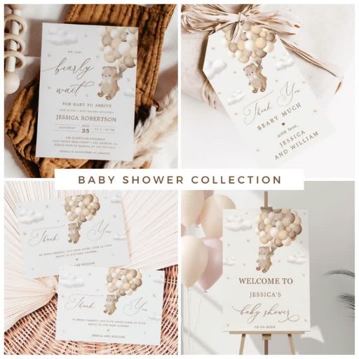 Teddy Bear with Brown Balloons Baby Shower Enclosure Card!