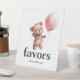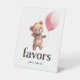 Add a charming touch to your girl baby shower with this adorable favour pedestal sign! Featuring a sweet watercolor illustration of a cute teddy bear with a pink balloon, this elegant yet playful design creates a coordinated and memorable look for your favour table. Place it near your party favours to guide guests and add an extra decorative element to your event. Order yours today to make your baby shower even more special!