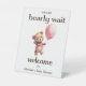 Welcome guests to your girl baby shower with this adorable custom pedestal sign! Featuring a sweet watercolor illustration of a cute teddy bear with a pink balloon, this sign sets the perfect tone for your celebration. The phrase "we can bearly wait" is displayed in elegantly whimsical typography, adding a playful and heartwarming touch. Easily customisable with your name and baby shower date, this sign is both durable and stylish, making it a beautiful keepsake long after the celebration. Create a magical first impression - order yours today!