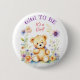 A sweet little teddy bear surrounded by pink and purple flowers watercolor illustration girl's baby shower buttons for the Gigi to be.