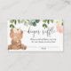 Teddy bear greenery pink floral girl diaper raffle enclosure card