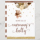 Watercolor Teddy Bear Brown and Gold Balloons Guess How Big Is Mummy's Belly Baby Shower Sign.
