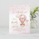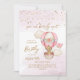 Teddy Bear Hot Air Balloon Baby Girl 1st Birthday Invitation