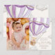 This design features a soft lilac purple watercolour hot air balloon teddy bear design and modern fonts. The script heading is an image that cannot be edited. All of the other text is fully editable. For more advanced customisation of this design, simply select the "Customise It" button above