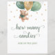 Watercolor Teddy Bear Sage Green and Gold Balloons How Many Candies In The Jar Baby Shower Sign.