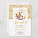 Teddy bear in crib yellow flowers girl baby shower invitation
