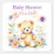 Teddy Bear in Flowers Girl's Baby Shower Square Sticker