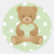 Stivker with cute teddybear carrying a green heart saying "its a boy". White polka dots on light green background.