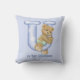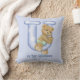 Cute nursery pillow or child's room pillow has soft pastel blue background that you can change to another colour if you click the customise button and then look on the right for the small edit link. Front of pillow features a climbing teddy bear with sitting on a pastel blue floral pattern letter U with text saying U is for Ulysses. Text area is ready for you to change to your child's name.