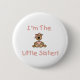 A little brown bear in a pink dress and hair bow and pink text that reads "I'm the Little Sister!" is featured on little sister T-shirts, bodysuits, stickers, mugs, mousepads, and other little sister items.