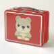 This is a standard metal lunchbox that appears to work just fine. We designed this box ourselves with an uploaded photo and custom text on the front and back. It looks absolutely beautiful except the front of the lunchbox is not centered like it shows in the photo. The print borders don't align with the inset flat part of the box where the preview photo online showed it perfectly centered in there. The back looks nice and centered though.