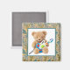 Inspired by the late King of Rock and Roll’s 1957 hit "Teddy Bear," this square magnet features an image of a teddy bear with a guitar and a chain around his neck, so you can lead him anywhere, on vintage 50s blue and pink flowers on tan. See the entire Nifty 50s Magnet collection in the PARTY FAVORS section.