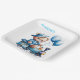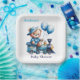 Teddy Bear On a Blue Train Boy Baby Shower Paper Plate