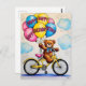 This is an AI generated image. I wanted the teddy bear to be on the seat of the bicycle holding the balloons however the teddy bear is not on the seat but, its close to the seat. I wanted the image to be in the style of a detailed drawing.