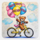 This is an AI generated image. I wanted the teddy bear to be on the seat of the bicycle holding the balloons however the teddy bear is not on the seat but, its close to the seat. I wanted the image to be in the style of a detailed drawing.