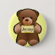 Cuddly Teddy bear design personalised button. Customisable name badge.