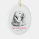 Ceramic Ornament with Teddy Bears stands ready to be personalised with your child's name and birthdate, plus download your photo on to the back.