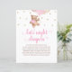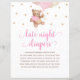 Watercolor Teddy Bear Pink And Gold Balloons Baby Shower Late Night Diapers Game Poster.