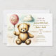 Teddy Bear Pink Balloon Bearly Wait Baby Shower Invitation