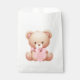 Create a special favour bag for your upcoming baby shower. Customise the text on the front. Teddy Bear Pink Design. Use the template to personalise.