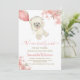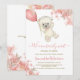 Teddy Bear Pink Floral Balloon Girl Baby Shower Invitation