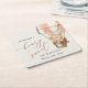 Teddy Bear, Pink Hot Air Balloon, First Birthday Square Paper Coaster