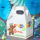 A fun 1st birthday gable party favour box with your child's name featuring a prince of a teddy bear all decked out in a colourful jewelled crown with a bunch of colourful balloon with letters on them that spell out PARTY. Personalising with your child's name makes it extra special. We specialise in custom-made designs, so contact us if you would like a unique made-to-order layout using this basic royal teddy bear design for your kid's memorable birthday celebration.