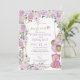 Teddy Bear Purple Floral Balloons Girl Baby Shower Invitation