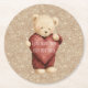 Teddy Bear Red Heart Gold Glitter Round Paper Coaster