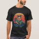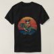 This playful T-shirt design features a cool teddy bear wearing sunglasses and riding a dinosaur against a vintage sunset background. Perfect for fans of quirky and imaginative art, this design combines childhood fun with a retro vibe, bringing a unique and adventurous touch to any outfit.