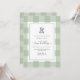 Teddy Bear Sage Gingham 1st Birthday Invitation