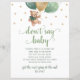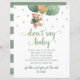 Watercolor Teddy Bear Sage Green and Gold Balloons Baby Shower Don't Say Baby Game Poster.