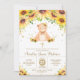 Teddy Bear Sunflower Floral Christening Baptism Invitation