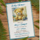Cute watercolor illustration of a teddy in brown and blue. Baby Shower invitations.