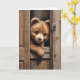 Cute brown teddy bear peeking in an old door opening for thinking of you.