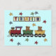 Two teddy bears hitch a ride on the train on Teddy Bear Train Tshirts, bodysuits, mugs, cards, stickers, postage, magnets, and other train design items with block style text that reads "TRAIN".