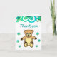 Teddy Bear Turquoise Flowers Baby Shower Thank You Card