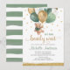 Watercolor Teddy Bear Sage Green and Gold Balloons We Can Bearly Wait Baby Shower Invitation.