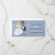 Adorable bride and groom teddy bears. This handsome couple are dressed in their wedding finery. He in his tuxedo and top hat and she is in her wedding gown and veil. Beautiful light blue background has a muted floral motif with lovely detailed floral accent border. All text is ready for you to customise.
