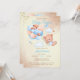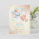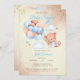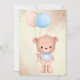Teddy bear with brown and blue balloons and clouds baby shower invitations.